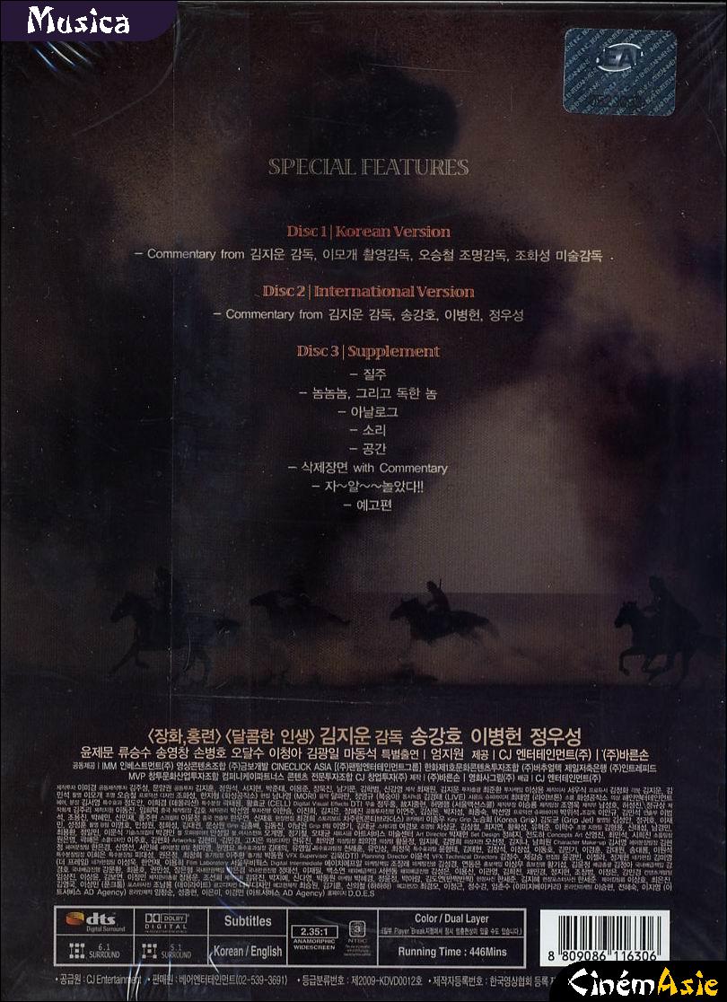 | remark | Disc 1 - The Good, The Bad, The Weird Korean Theatrical Cut (136min) Disc 2 - The Good, The Bad, The Weird International Cut (129min) | |