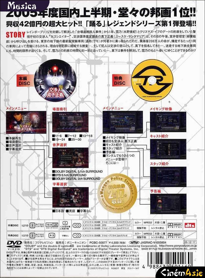 NB : those specifications haven't always been verified. We cannot test every single DVD, VCD or CD which is present in this database. The provided information comes from the item cover or from the distributor website or documents. We try our best to check its reliability, especially for the languages and subtitles.